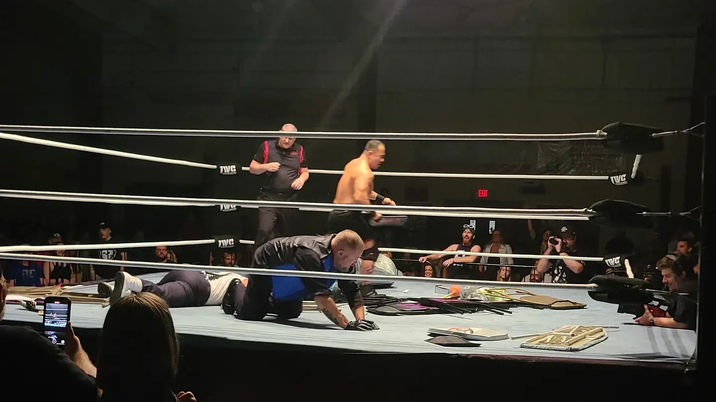 Dupree regained his composure and managed to hit Pollock in the head with his cane. This was followed by a huge lariat from Knox, a Rock Bottom, and the pin. After the match, Pollock attempted to get up onto his feet, but Dupree ran back into the ring to continue the beat down. Dupree got on the microphone and said that Chapter 3 of this saga happens next month at IWC Super Indy.