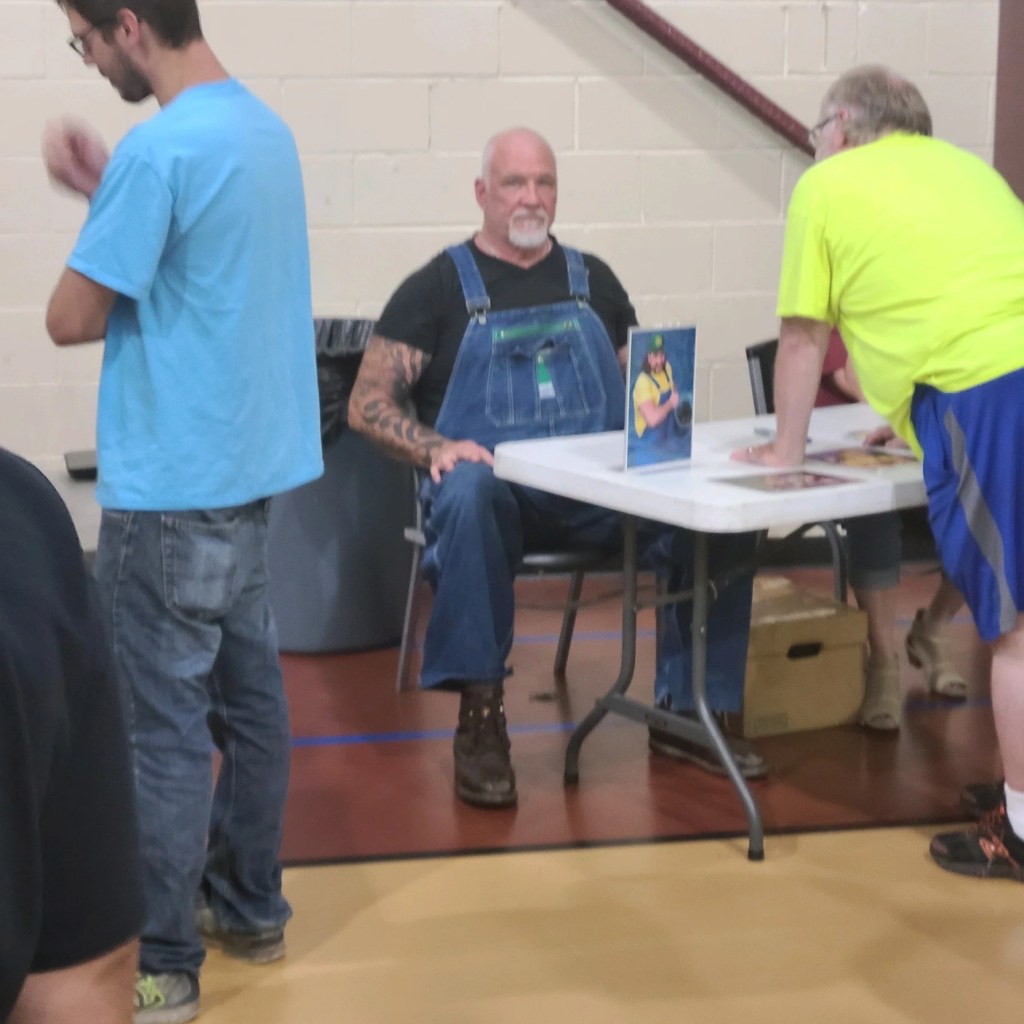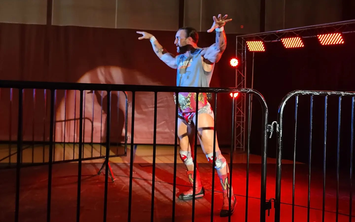 Soon the participants were brawling in the crowd. At one point, Marshall Marino hit a spear on Hardcore Hooven off the bleachers and through a table. I was lucky enough to capture that moment on video which I will post to Instagram and Facebook. Once back in the ring. Hardcore Hammer Time took control. Hardcore Hooven handcuffed Marshall to the ring ropes. Jameson and Hooven each grabbed a chair and hit an Edge and Christian-style Con-Chair-To on Mickey Gambino standing upright. When Gambino hit the mat, Jameson put a chair under his head and performed the more traditional Con-Chair-To on Mickey.