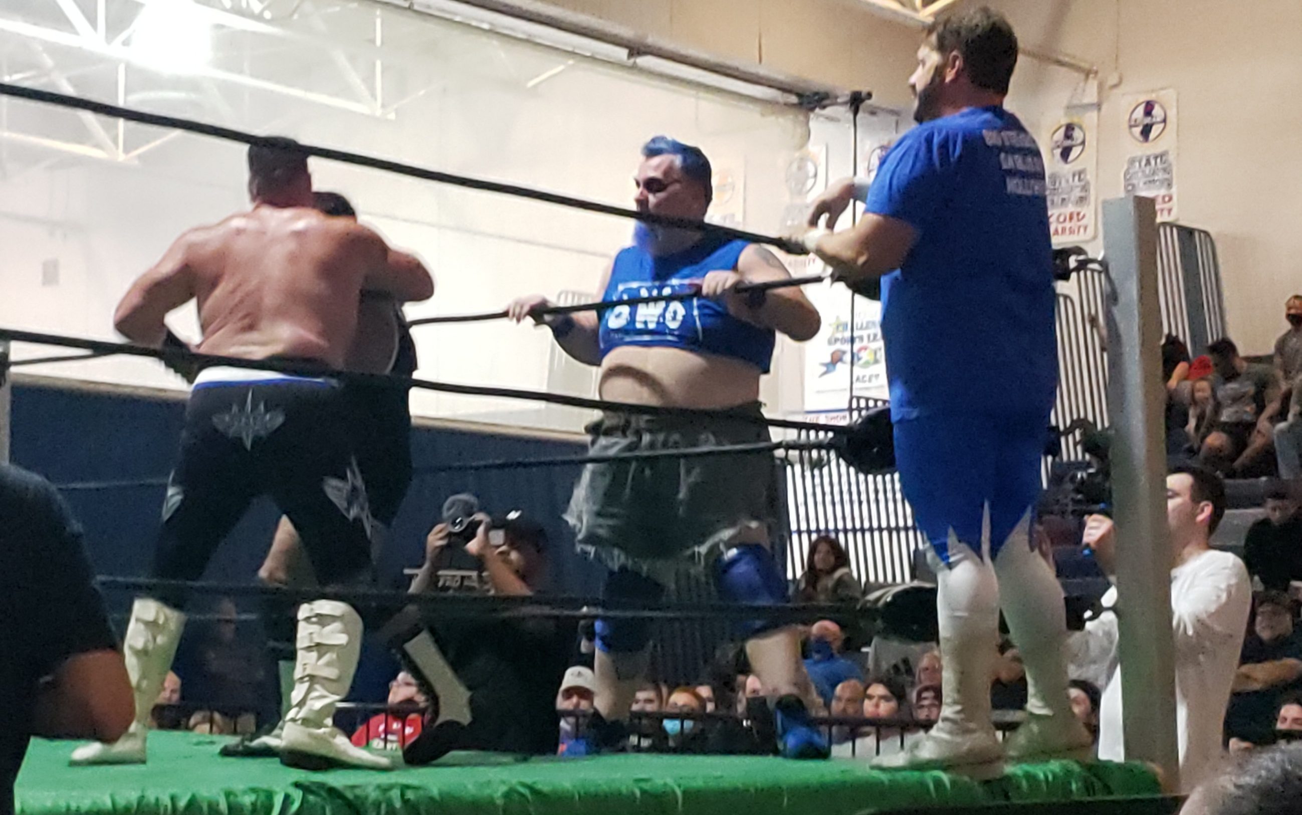 As Coralluzzo’s three henchmen appeared ready to pounce on Mark Henry in the ring, The Blue Meanie, Hollywood Nova and The Powerchild Eric Justice ran out from the back to chase off the Coralluzzo Collection agency and send the show to intermission.