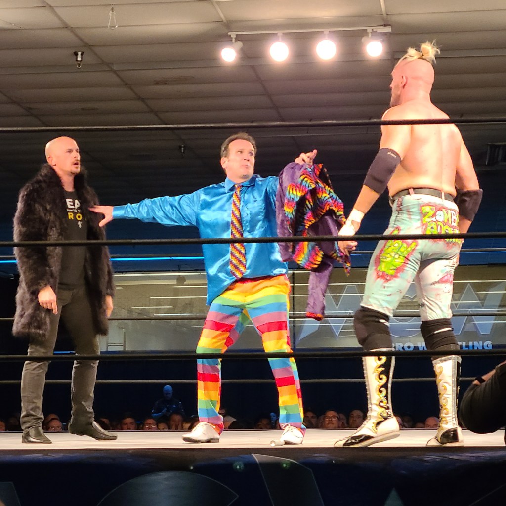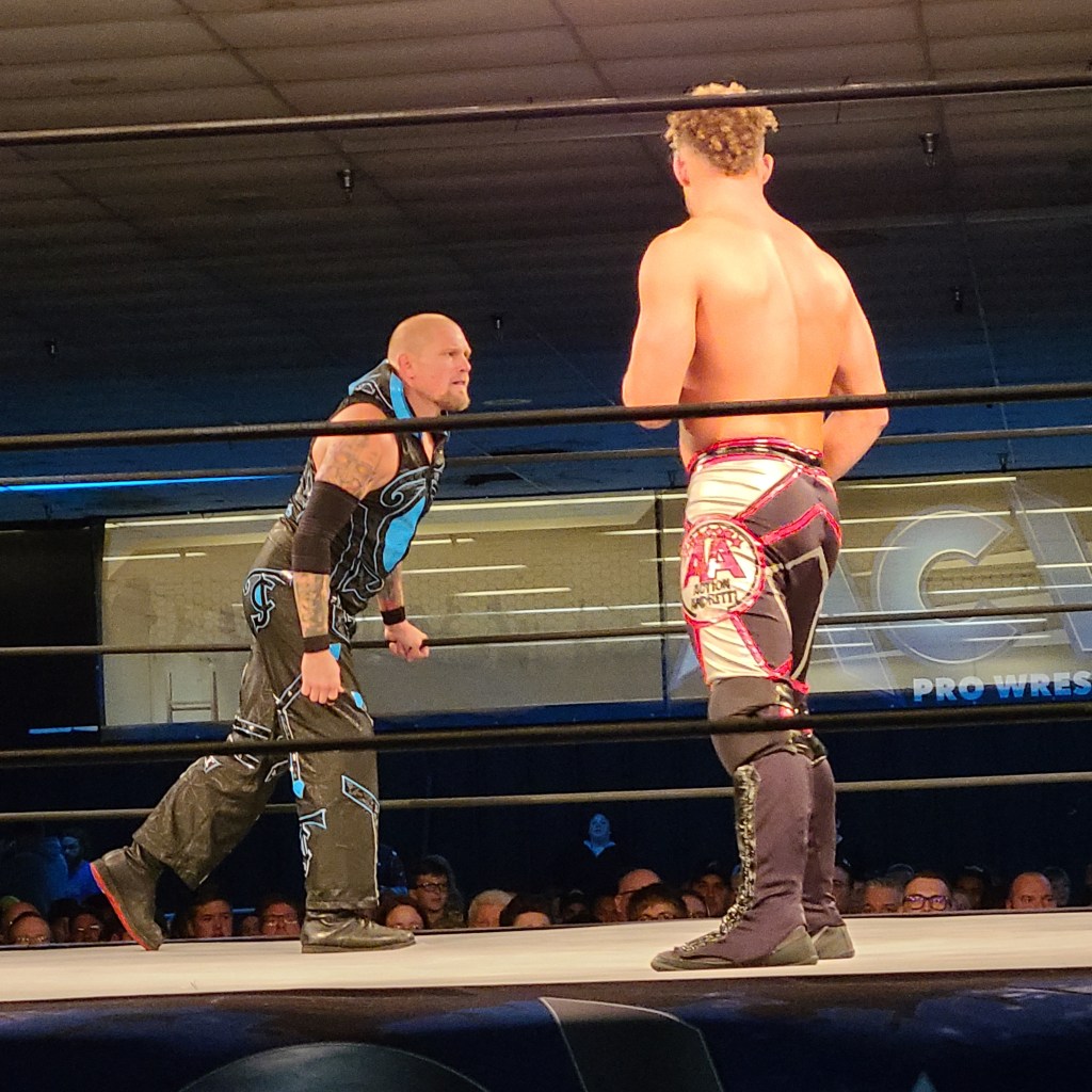 Ninja Mack and Action Andretti wowed the crowd with a sequence of high-flying moves before a quick stop to reset. A kick to the face from Andretti sent Mack to the outside. Andretti appeared to attempt a flip to the outside, but landed on the apron and simply kicked Ninja Mack in the face.