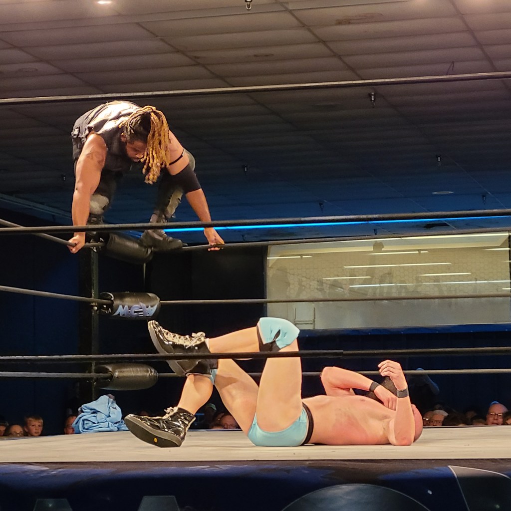 Even fans from outside the local Mid-Atlantic region should recognize the names of the two performers in this MCW Heavyweight championship match. Brian Johnson and Moses are stars of Ring of Honor, with Moses comprising one-third of the popular Shane Taylor Promotions faction with Shane Taylor and Kaun. In MCW, most fans know Moses and Kaun as former MCW Tag Team Champions, Sons of Savagery.