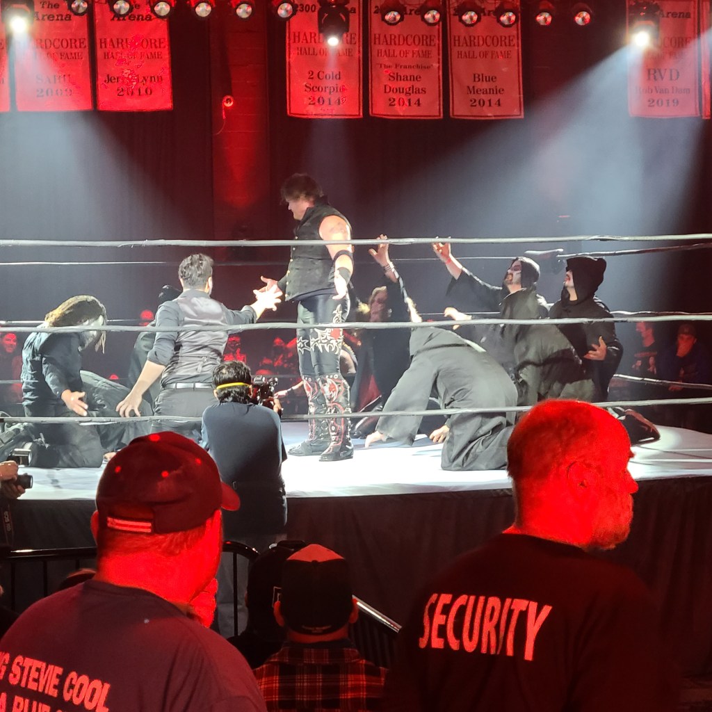 Prior to the first match, ring announcer Steven Deangelis called Blue Meanie to the ring. The Meanie, dressed as Blue Meanie Claus for the holidays, started with a hearty “Ho, Ho, Ho from the bWo.” Meanie said that, this holiday season, he is grateful to be from Phildelphia, grateful to have made his ECW debut in Philadelphia, and grateful to have performed in his only Wrestlemania in Philadelphia. Meanie kicked off the show by wishing everyone a Meanie Christmas and a Happy Blue Year.