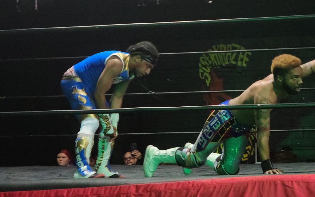 The Throne spent much of the match setting up opportunities to double team Injodible behind the referee’s back, choking him in the corner. Later, with the referee distracted once again, Injodible MB picked Riley up in a fireman’s carry. K.C. Lycan snuck into the ring and speared Injodible and Riley fell on top of the fallen luchador for the pin.