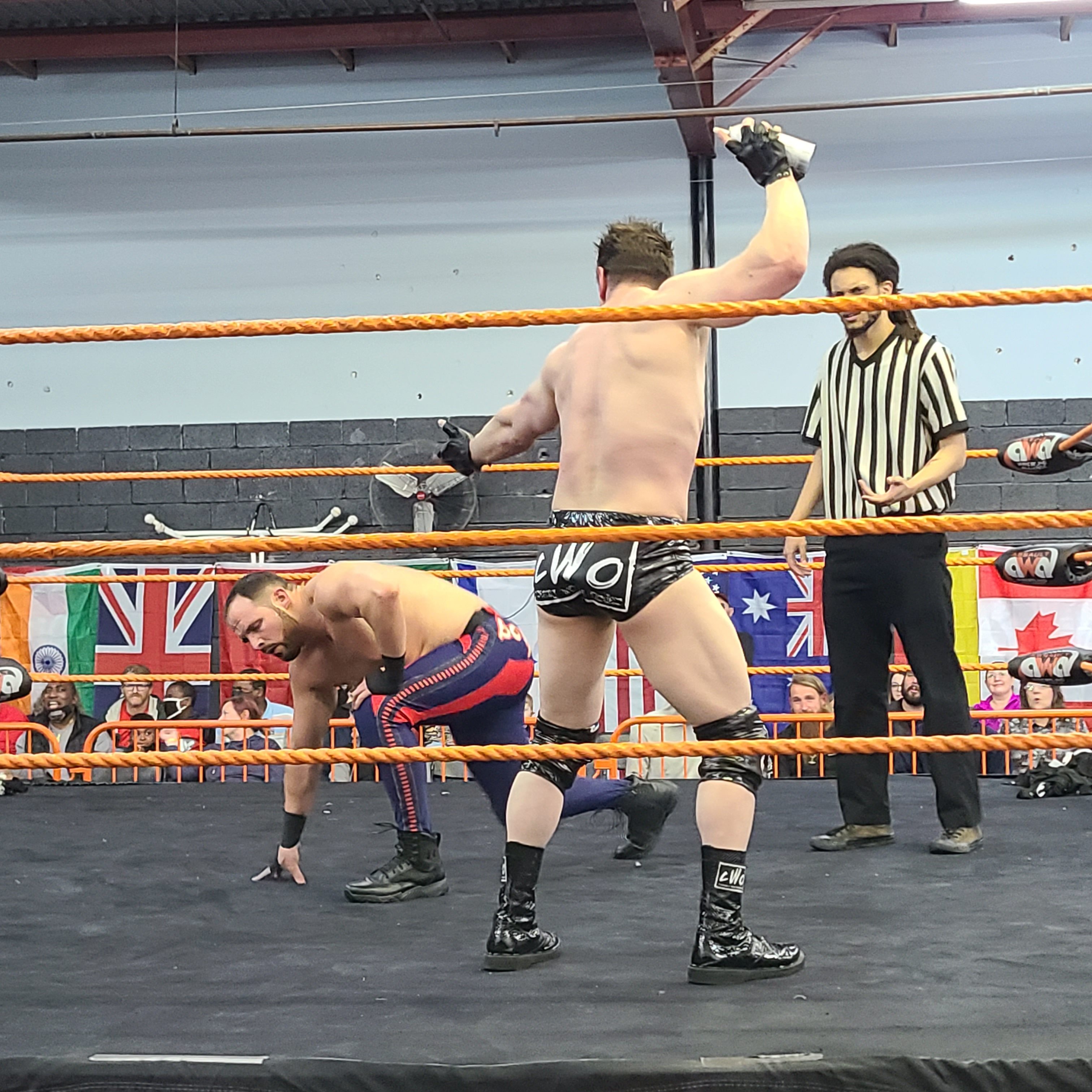 Brym Stone and Paragon each missed a splash on the other, which left both men down on the mat, exhausted. Brym Stone managed to put an arm over Paragon for a pin attempt, but Paragon placed his foot on the ropes.