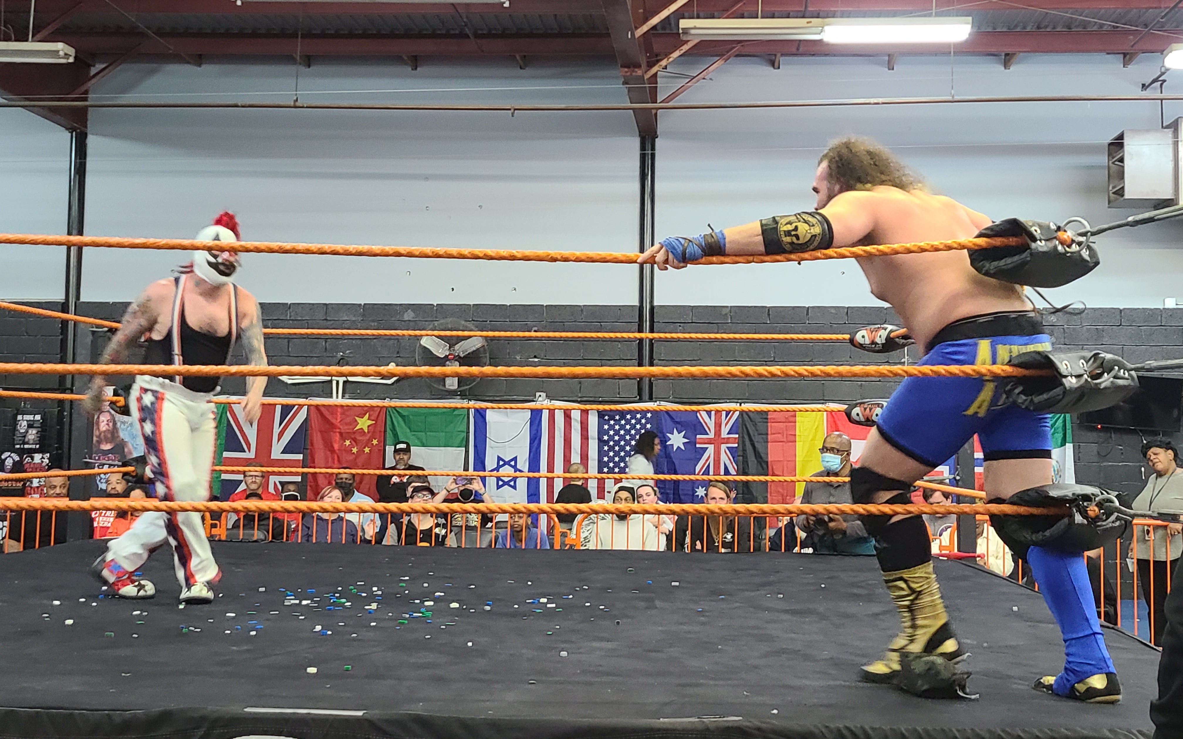 Although Anthony Athens told Livid that the AWA is no place for a clown, this match for the AWA Merciless Championship ended up being a circus. Livid started the match by asking Athens what was “up there.” When Athens looked, Livid slapped him. The two men crisscrossed several times before Livid said “STOP,” told Athens to look up…and slapped him again.