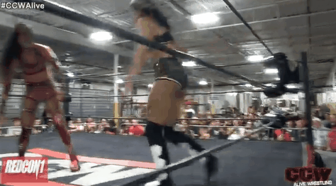 Elaban regained her composure after the early flurry by Moore, evaded a charging Moore, snapped her leg across the top rope, then slammed the same leg into the apron. Elaban took her time working the leg of Moore over the next few minutes. Every so often, Elaban would turn her attention from hurting Moore to taunting the crowd with her success.