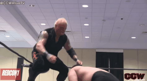 Eventually, Fatu and Gangrel left the ringside area and brawled around the back of the room. Gangrel pummeled Fatu with trash cans, rammed his head into a table, and used a chair to choke Fatu. Jacob charged, but Gangrel used a back body drop to send Fatu crashing through another table. As Gangrel threw the broken table on top of Fatu, the fans began chanting, “We want blood! We want blood!”