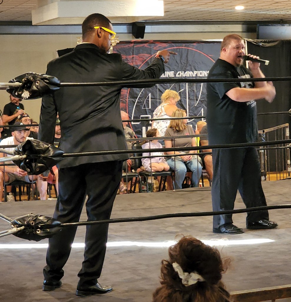 Coming out of the intermission, it was announced that Sicend had been added to the second King of Maryland Qualifier match between Will Knox and Nick Sarachelli. Knox, a D.C. native upset by fan chants of “DC Sucks!” decided not to get in the ring at all. When Sicend and Sarachelli locked up, Knox tried to sneak in and clothesline them both. Instead, they teamed up to knock Knox right back out onto the floor at ringside.
