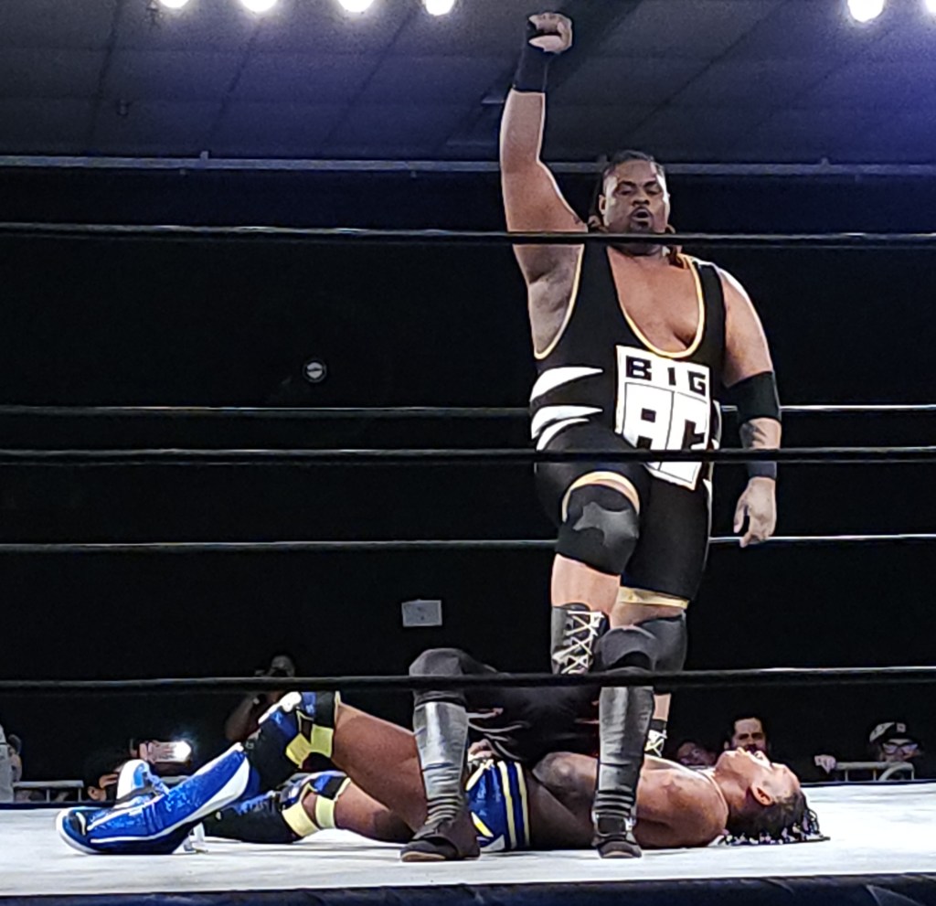 It seems hard to believe that anyone in the crowd gave Ykies and Reno a chance against Big AC, Adonis Cole. Turns out they had good reason to be doubtful. Cole threw each man around the ring with little effort as they tried to mount some sort of team offense, but were flattened with a huge double clothesline from the big man.