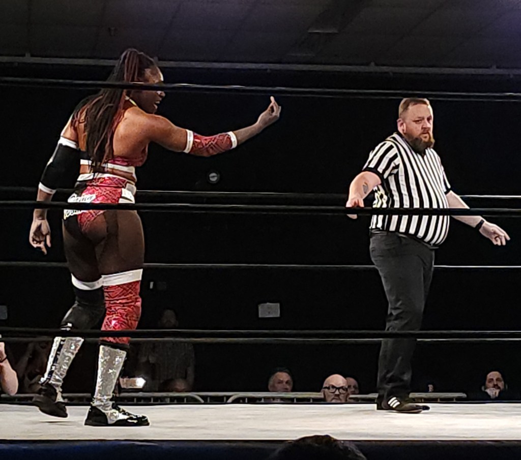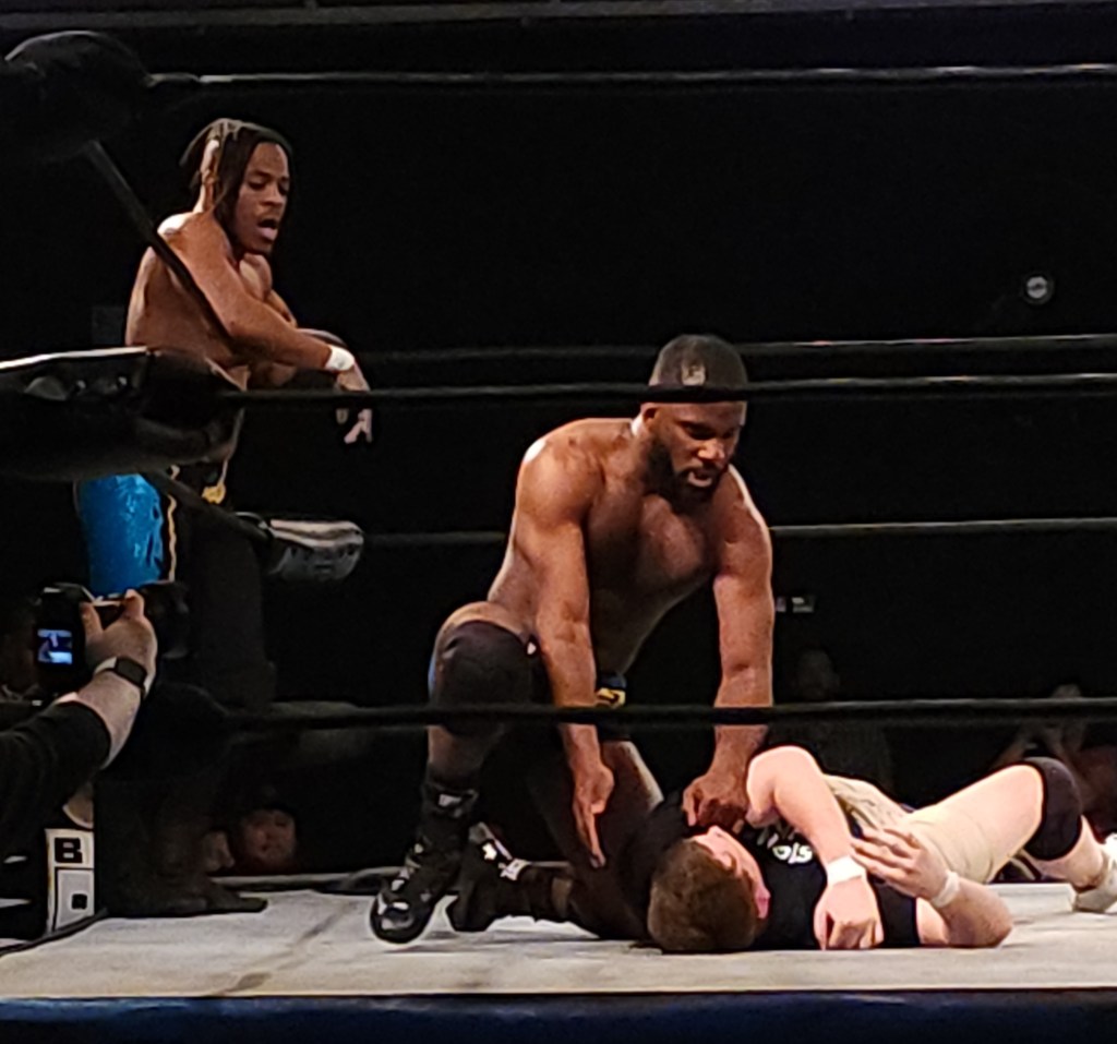 Newcomer, “The Thriller” JTS, captivated the crowd during his entrance with his slick dance moves and immense energy. Cassius “Cash” Carter, who had just finished berating the fans, challenged JTS to a dance off, which turned out to be a cover for a sneak attack. JTS fought hard, but was caught off guard by an eye poke from Carter with the referee’s back turned.