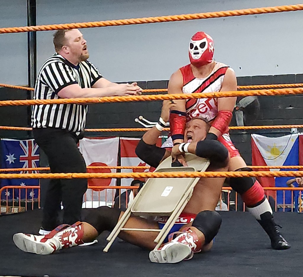 Macko re-entered and faced off with Landon Hernandez. However, when Macko tried to come off the ropes, Raze pulled the ropes down from the outside, sending Macko crashing to the floor. The Golden Glovers tried to double team Raze in the ring with back-to-back spears and dropkicks. Warwulf returned and dropkicked Bambino out of a Raze body slam. Hernandez followed with a frog splash, but managed just a two count.