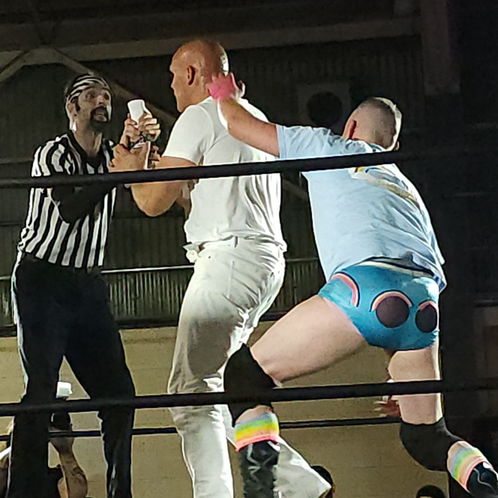 As the match wound down, Frankie Pickard dodged a charging Outkast and hit an Exploder suplex into the turnbuckle for a near fall. Pickard began arguing with the referee about the slow count and got hit with a splash from Jay Outkast, then another. Outkast went for a third, but Pickard moved the referee into Outkast’s path.