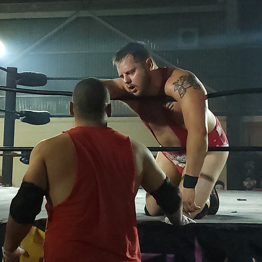 Pickard and Outkast rose to their knees simultaneously and started exchanging blows from that position. The battle continued as each man stood on their feet in the center of the ring until Pickard dropped Outkast with a hard forearm shot off the ropes. After a short reset, Outkast ducked a clothesline and hit a belly-to-belly suplex for a near fall.
