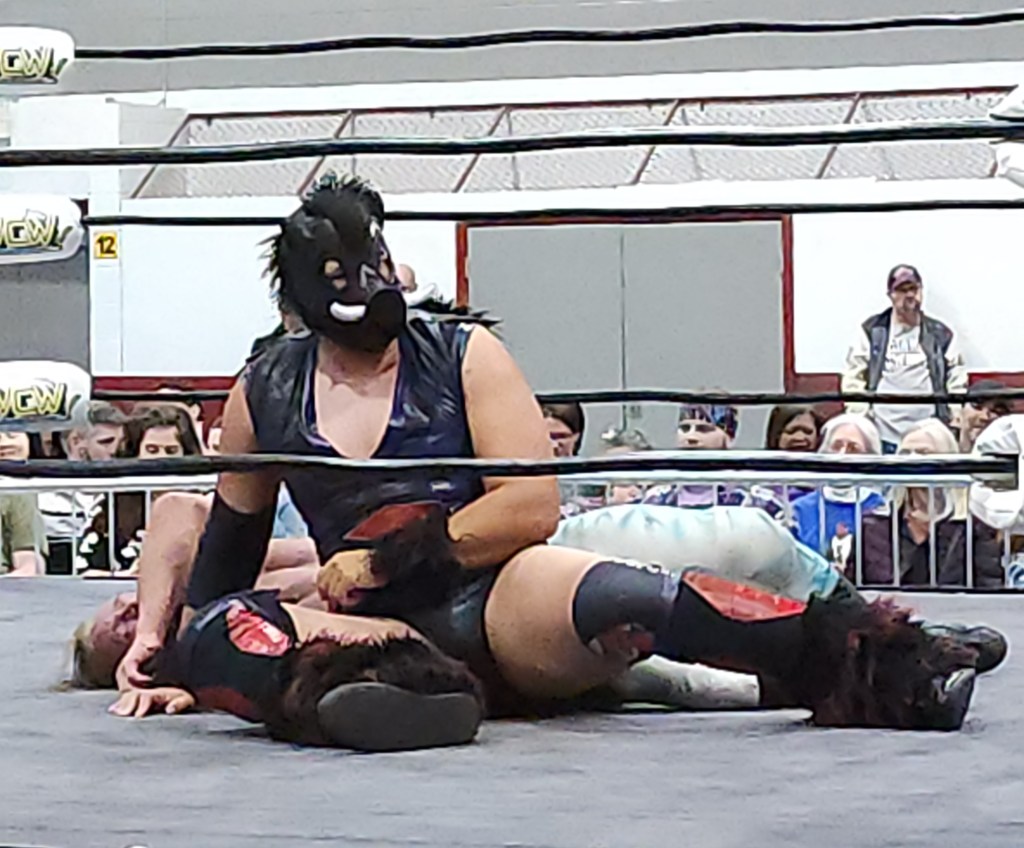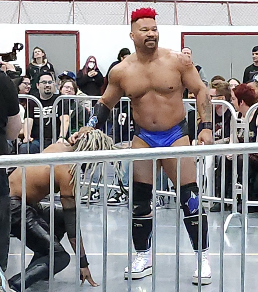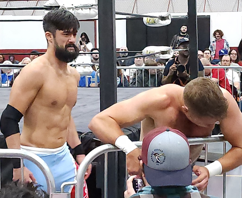 The crowd erupted when Logan Easton Laroux entered the venue for the final match of his career. So much so, that the expected overwhelming response for AEW’s Wheeler Yuta was completely overshadowed. As expected, these two skilled ring technicians started with some impressive chain wrestling, with the exchange of holds and counter-holds leading to multiple resets.