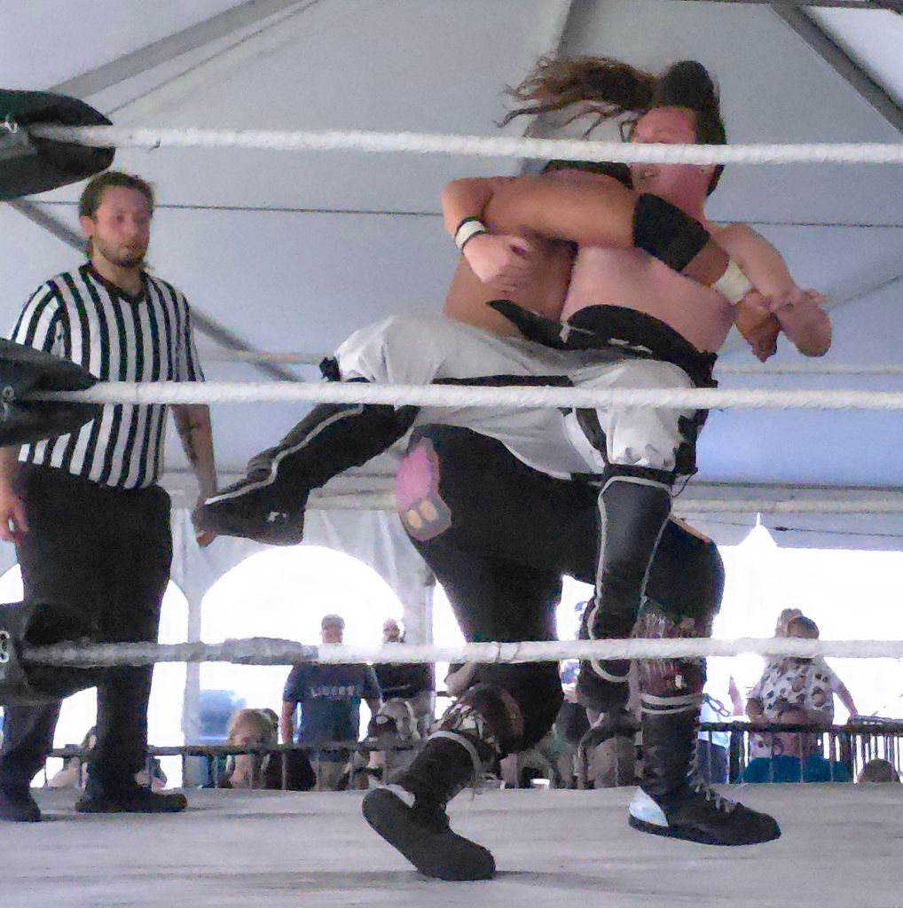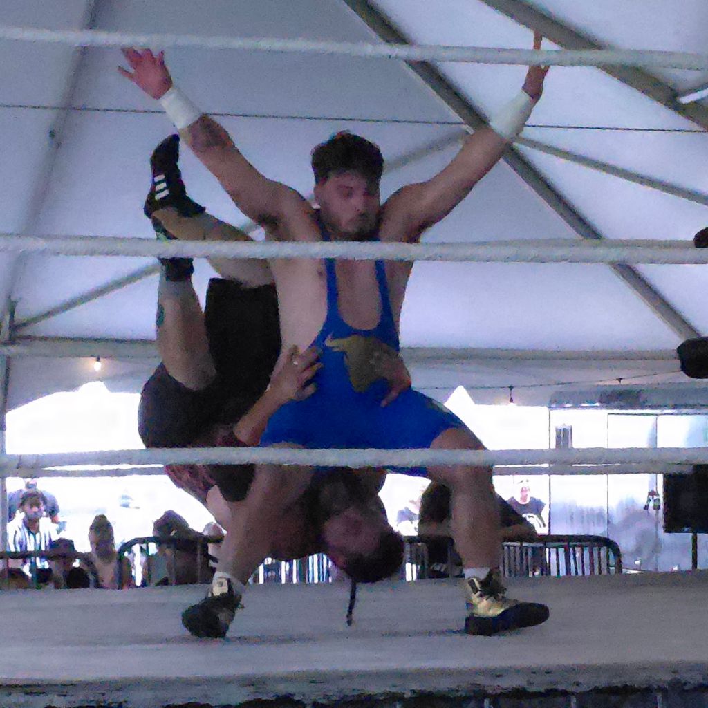 Mistretta went out to ringside, grabbed two beers, returned to the ring, and proposed a toast with Berg. Unbelievably, Berg took Mistretta up on his offer and immediately regretted it. The champion chugged his drink then kicked Berg in the stomach. The rookie move by John Berg allowed the champion to take control of the match for an extended period.